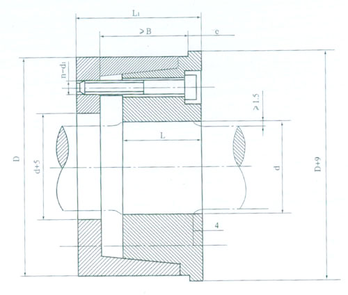 內(nèi)徑d=100m,外徑D=145mm的Z9 型脹緊聯(lián)結(jié)套: